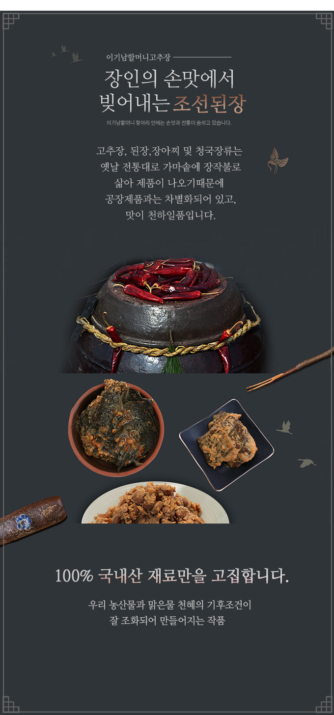 ¼øÃ¢À̱ⳲÇÒ¸Ó´Ï/ÄḸÀ» ÁÖ¿ø·á·Î ¸ÞÁÖ¸¦ ¾¥¾î 7°³¿ù~1³â°£ ÀÚ¿¬¹ßÈ¿/Çѱ¹ÀüÅë½Äǰ(³ó¸²ºÎÁöÁ¤ Á¦26È£)/¼øÃ¢°íÃßÀåÁ¦Á¶±â´ÉÀÎ/±íÀº¸À/¿ÀÁ÷ ÀüÅë¹æ½Ä¿¡ ÀÇÇÑ ¼Õ¸À°ú Á¤¼º/ÀüºÏ ÃÖ°í¸íǰ ¼±Á¤/¼øÃ¢À̱ⳲÇÒ¸Ó´ÏÀÇ °íÃßÀå°ú µÈÀåÀº Çѱ¹ÀüÅë½Äǰ¿¡¼­ ±× ǰÁúÀ» º¸ÁõÇÕ´Ï´Ù/Æ÷Àå¿ë±â¾È³»:´ÜÁö(µµÀÚ±â)·Î Æ÷ÀåÀ» ¿øÇϽô °í°´²²¼­´Â Æ÷Àå¿ë±â ¼±ÅûçÇ׿¡¼­ ²À ¼±ÅÃÇ¥±â¸¦ ÇϽñ⠹ٶø´Ï´Ù(´ÜÁö°¡°ÝÀº º°µµ¿ä±ÝÀÌ ÀÖ½À´Ï´Ù)/¹ÌÇ¥±â½Ã¿¡´Â ÇÃ¶ó½ºÆ½ ¿ë±â·Î ¹ß¼ÛµË´Ï´Ù/½Ã°£ÀÌ Áö³¯¼ö·Ï µÈÀåÀÌ ´õ¿í °Ë¾îÁö´Â ¿¾³¯ ÀüÅëµÈÀåÀÔ´Ï´Ù