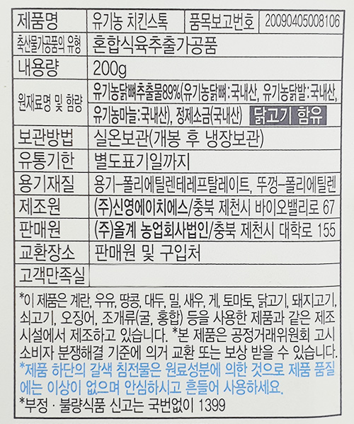 »ó ǰ ¸í : ¡ÚÀ¯±â³ó ġŲ½ºÅå 200g